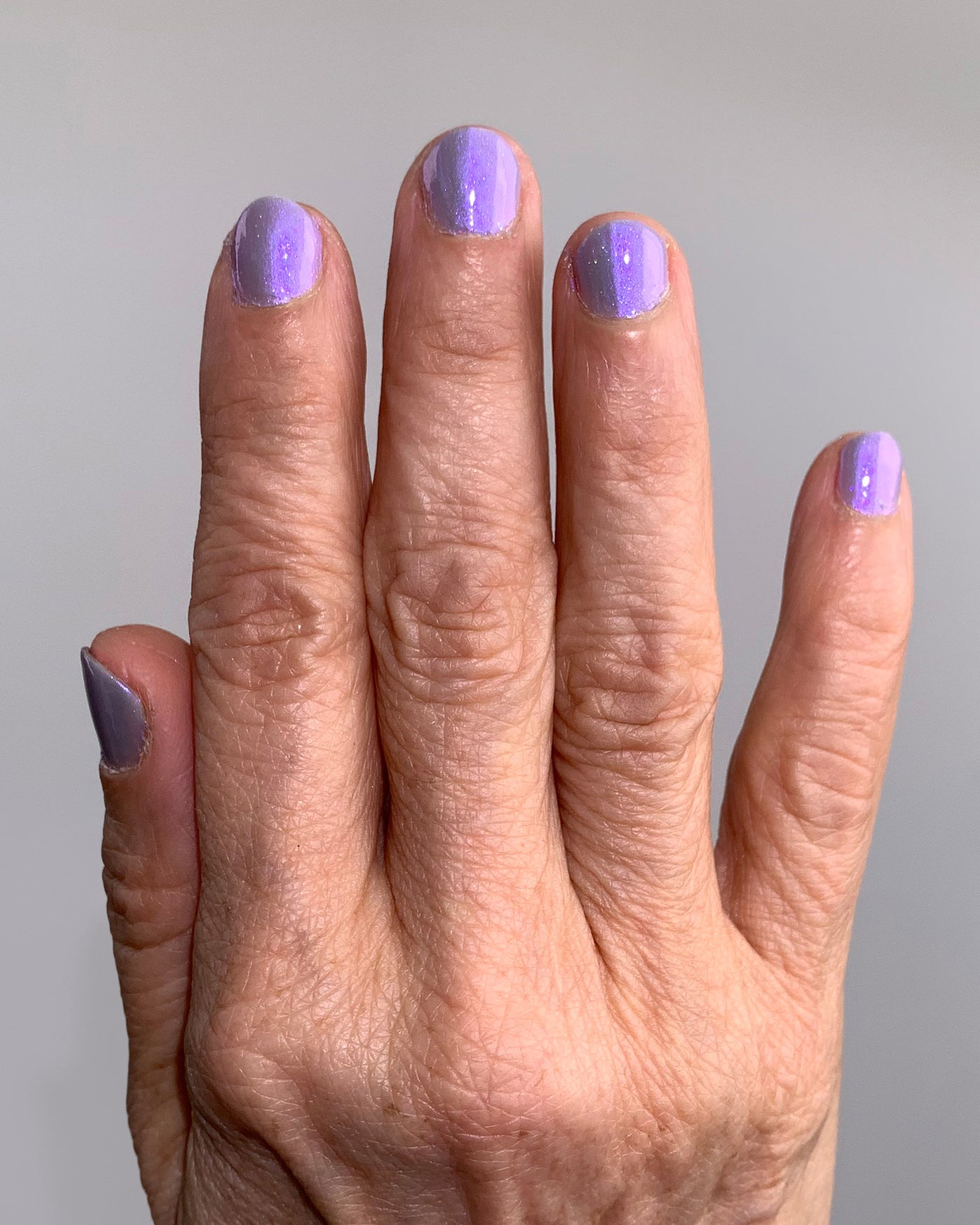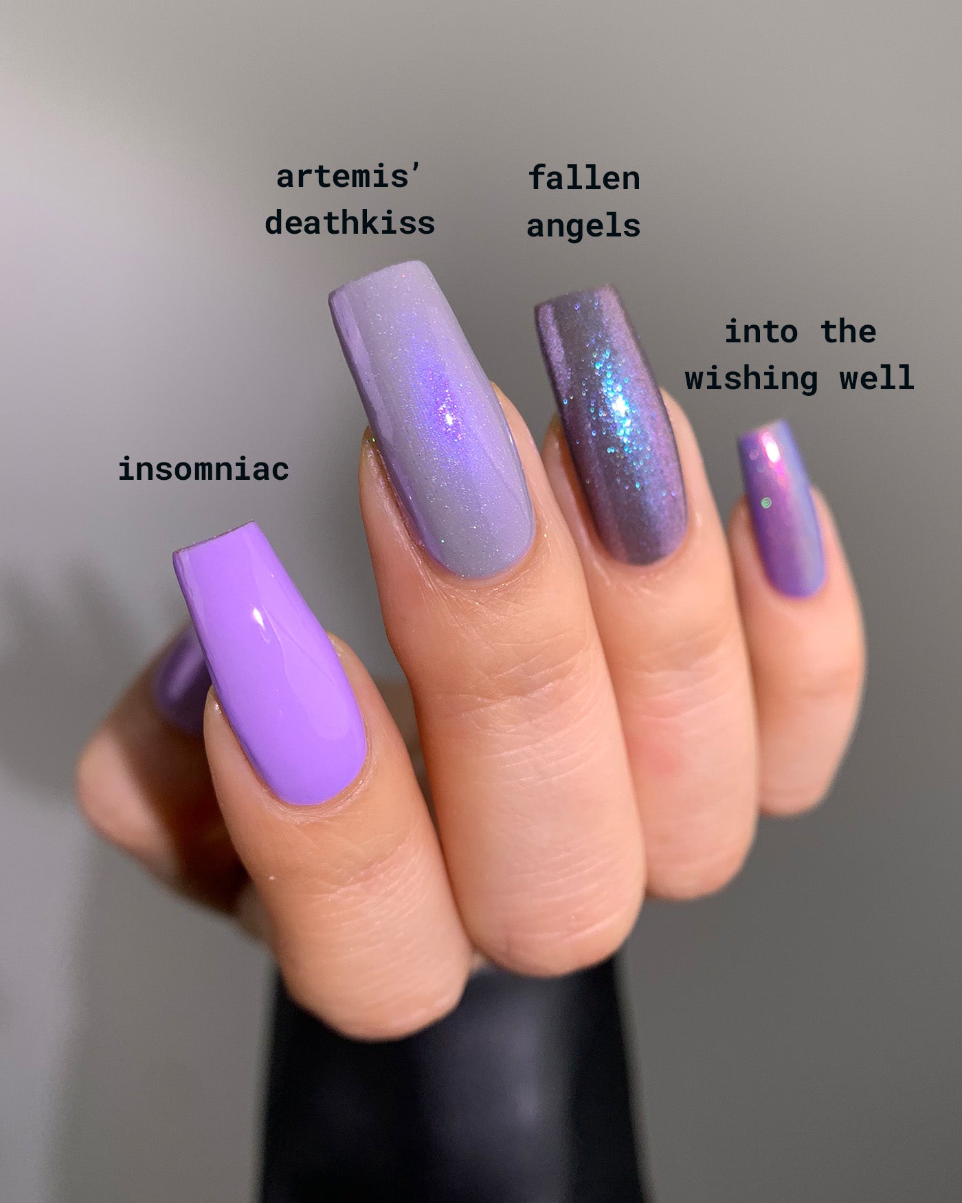 ARTEMIS’ DEATHKISS is a gray-purple lacquer filled with purple shimmer and micro holographic glitter that looks most divine in the sun. from the GODDESS COMPLEX SET.
