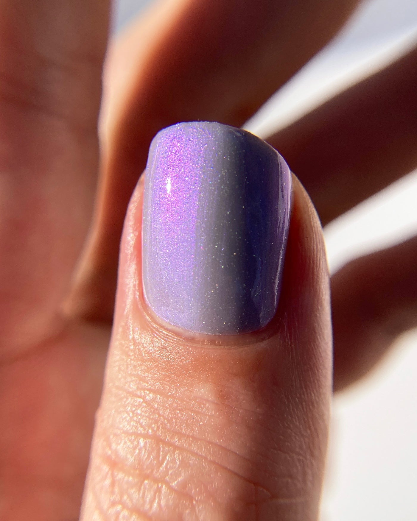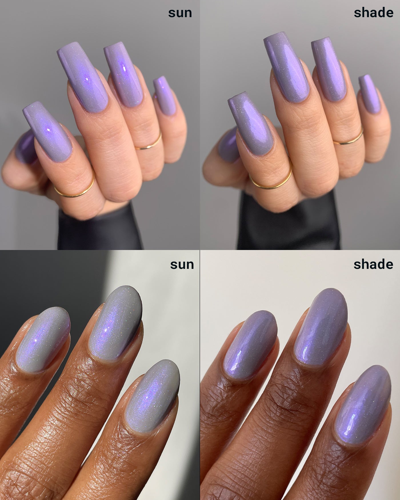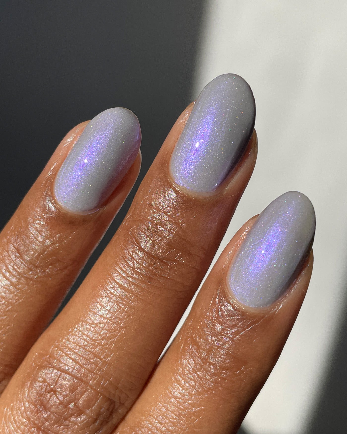 on the hunt for something extra celestial? you’ve been struck by a bit of divine luck. an entrancing homage to the eponymous lunar huntress, this mystical tincture features a dusky gray-purple base that’s seemingly moonlit by an intense glow of purple shimmer and a dash of micro holo glitter that twinkles like stars in the night sky.
