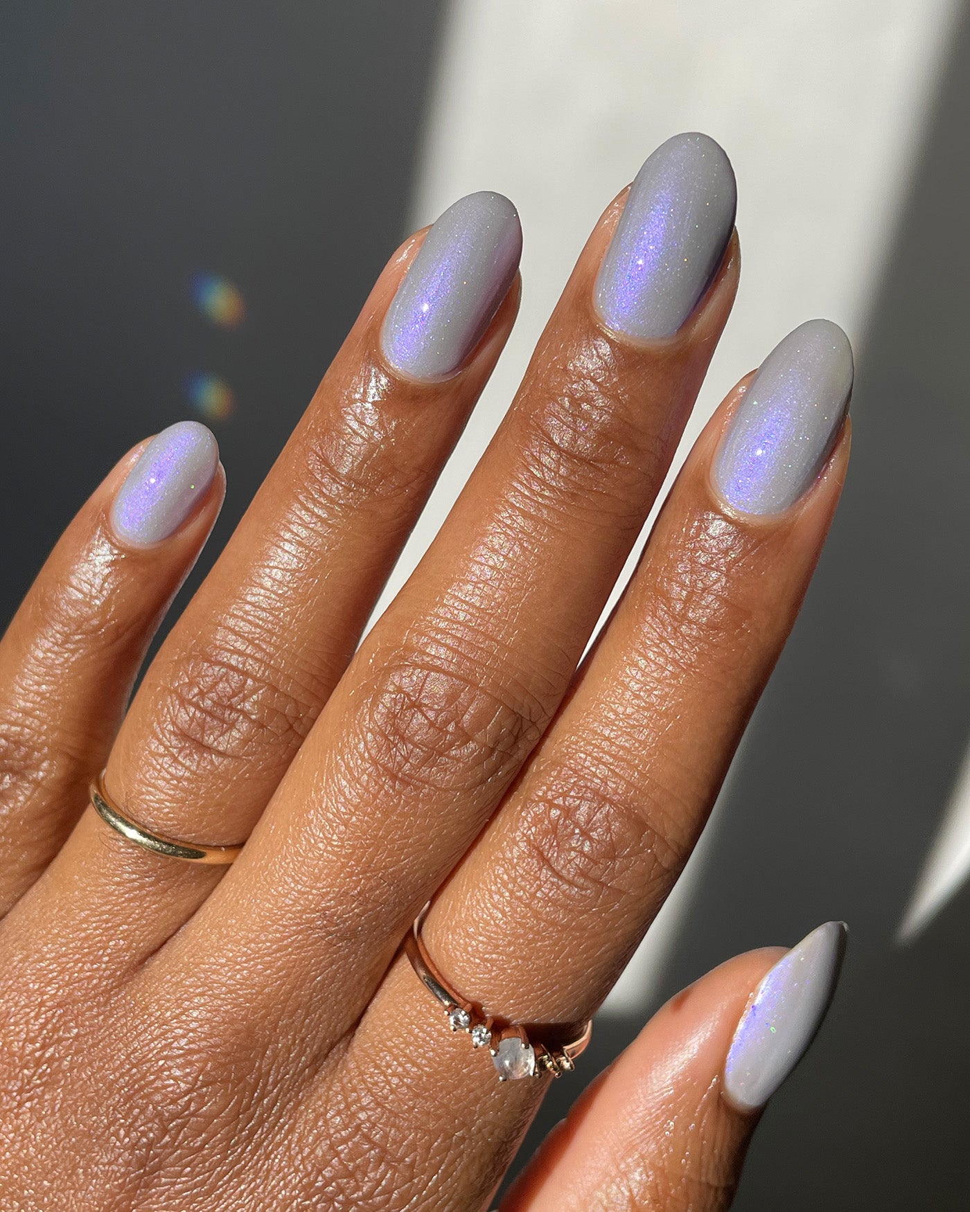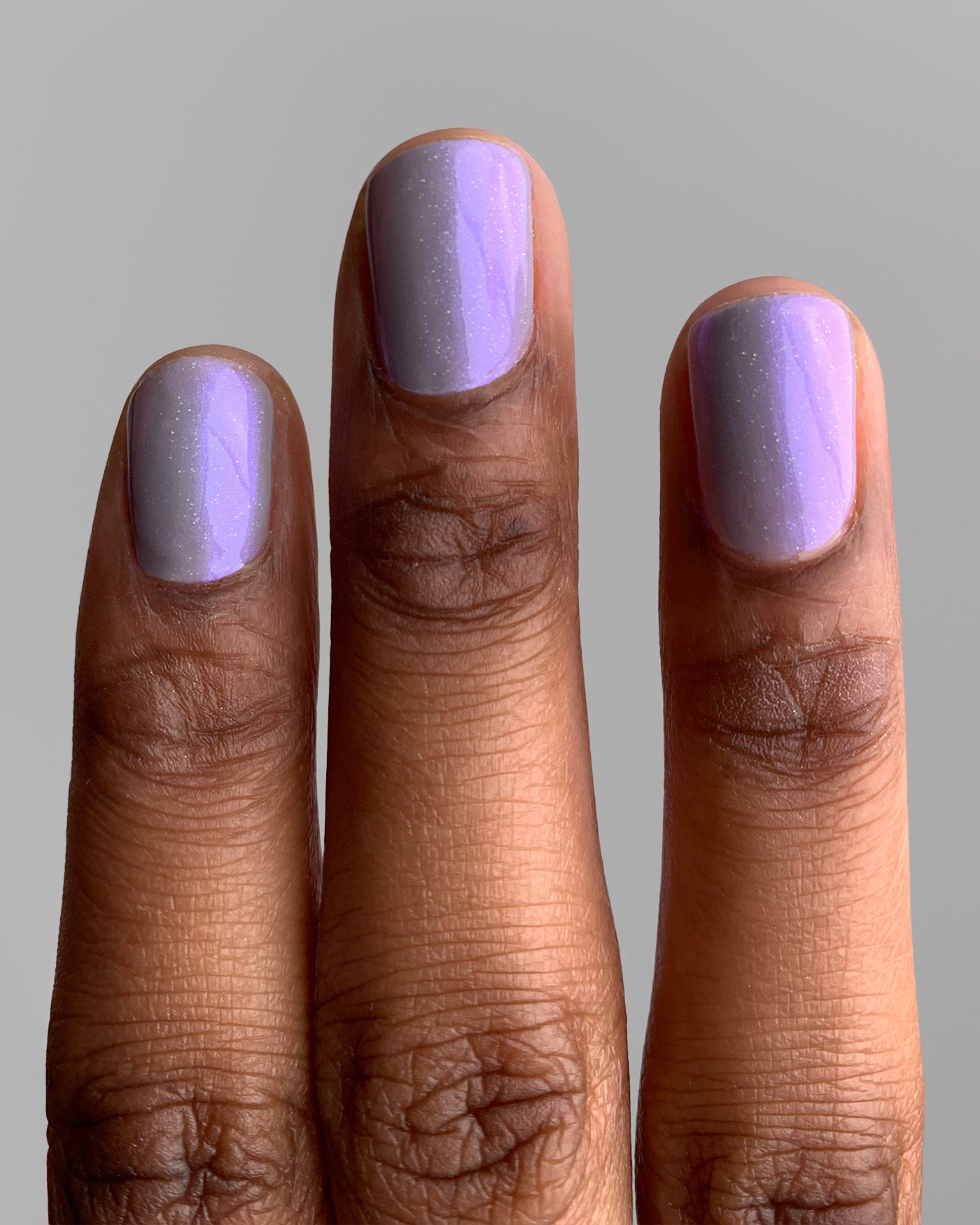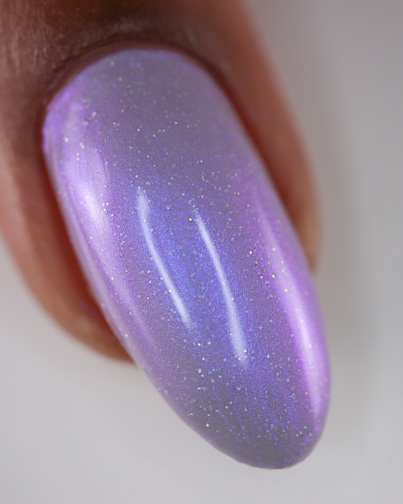 on the hunt for something extra celestial? you’ve been struck by a bit of divine luck. an entrancing homage to the eponymous lunar huntress, this mystical tincture features a dusky gray-purple base that’s seemingly moonlit by an intense glow of purple shimmer and a dash of micro holo glitter that twinkles like stars in the night sky.
