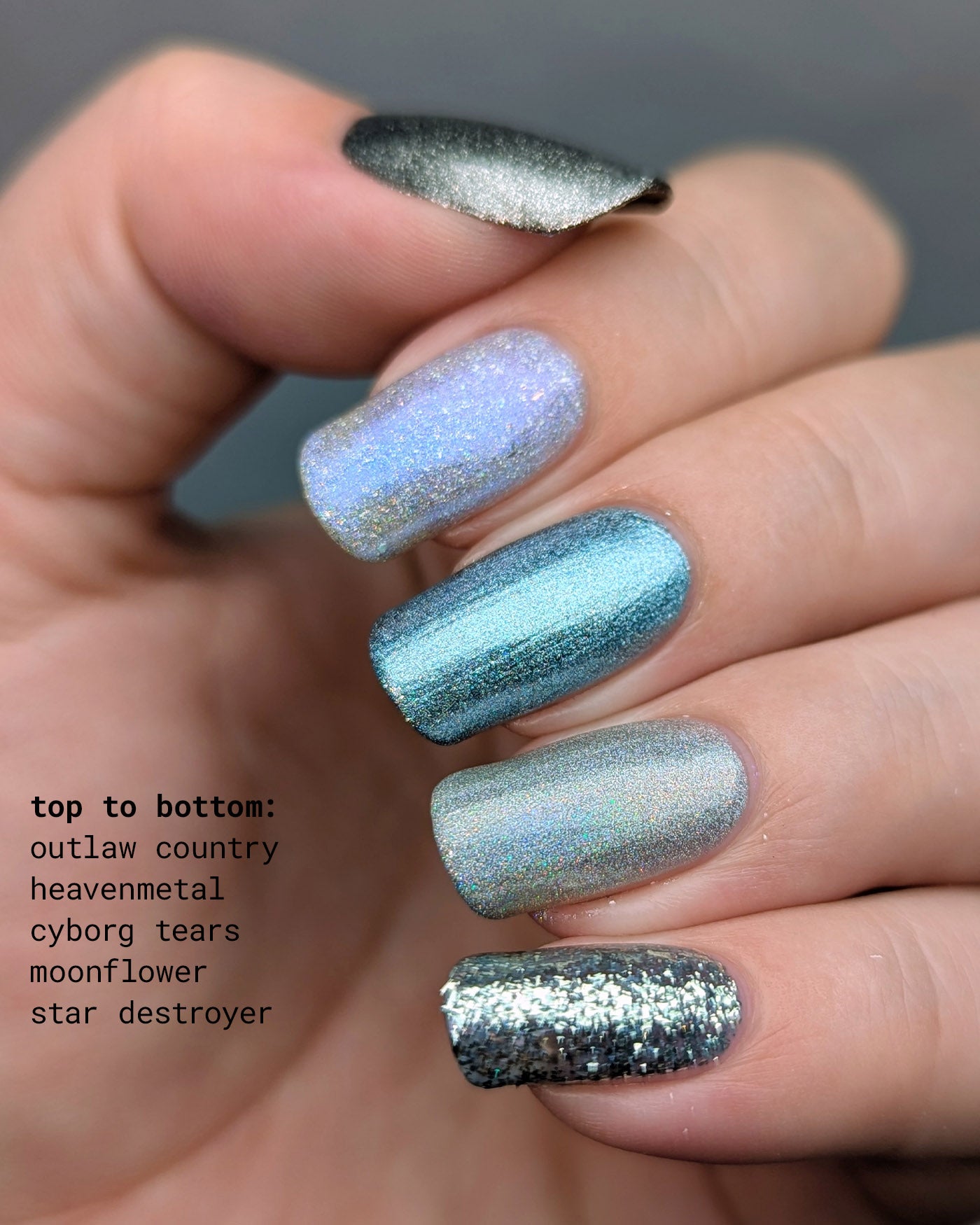 CYBORG TEARS is light blue-silver metallic holographic lacquer. from the WELCOME TO PARADISE SET.