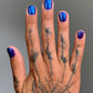 DARK NIGHT OF THE SOUL is a bright purple lacquer filled with blue shimmer. from the FALLEN SET.