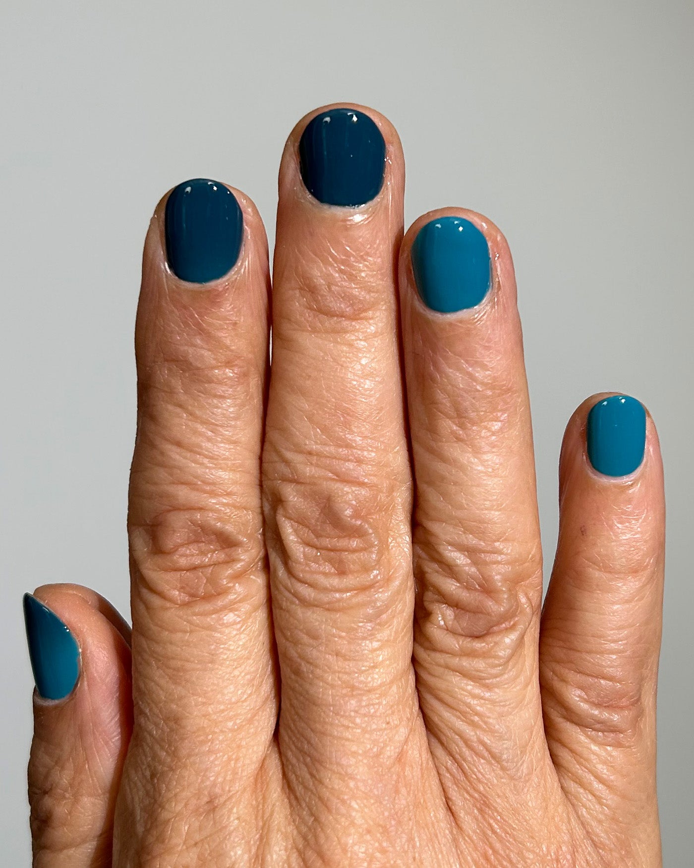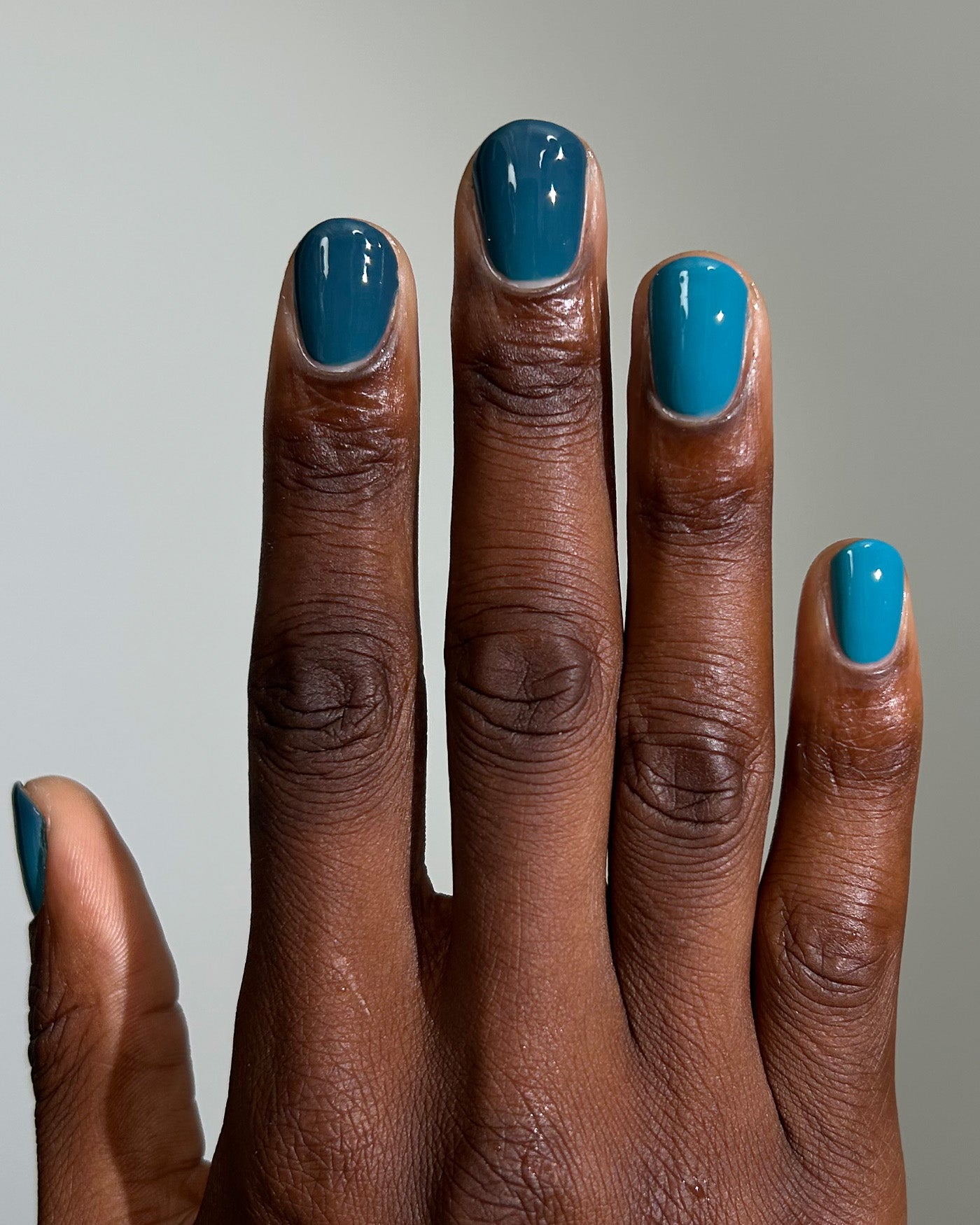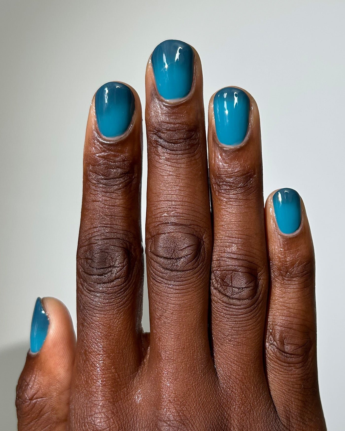 MORAL DECAY is a dark green to teal thermal lacquer that transitions from a shade of dark green-black when cold to bright teal when warm. from the WELCOME TO PARADISE SET.