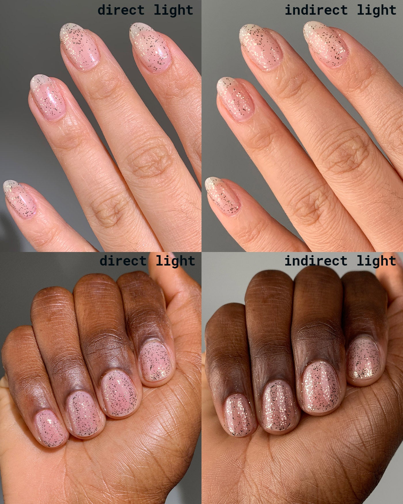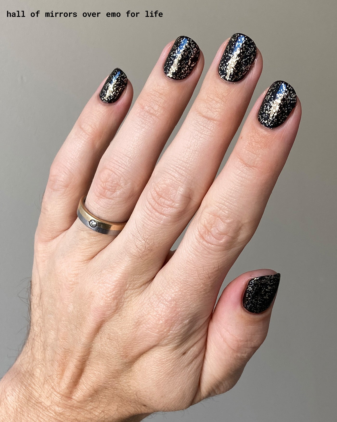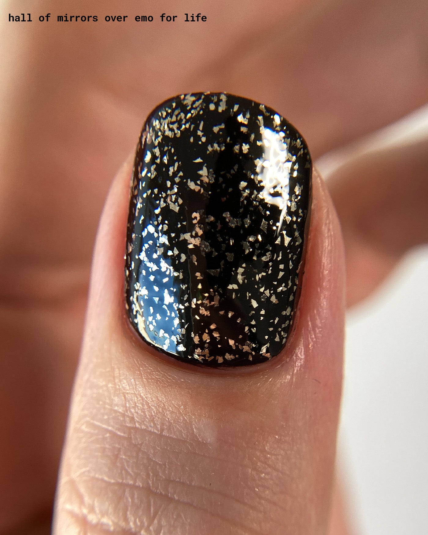 NOTE: due to the metallic nature of the flakies, it’s normal for this lacquer to appear gold in bottle + while it’s viewed in warm lighting or around warm tone objects (i.e. clothes, furniture, etc.).