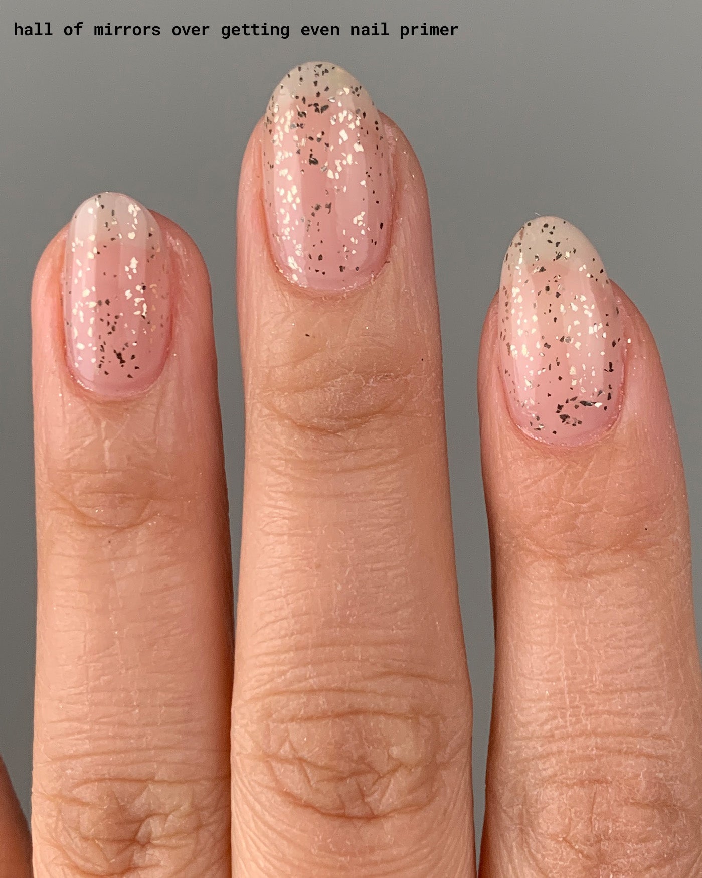 HALL OF MIRRORS is a glossy topper featuring silver flakies in a clear base. from the BAROQUEN SET.
