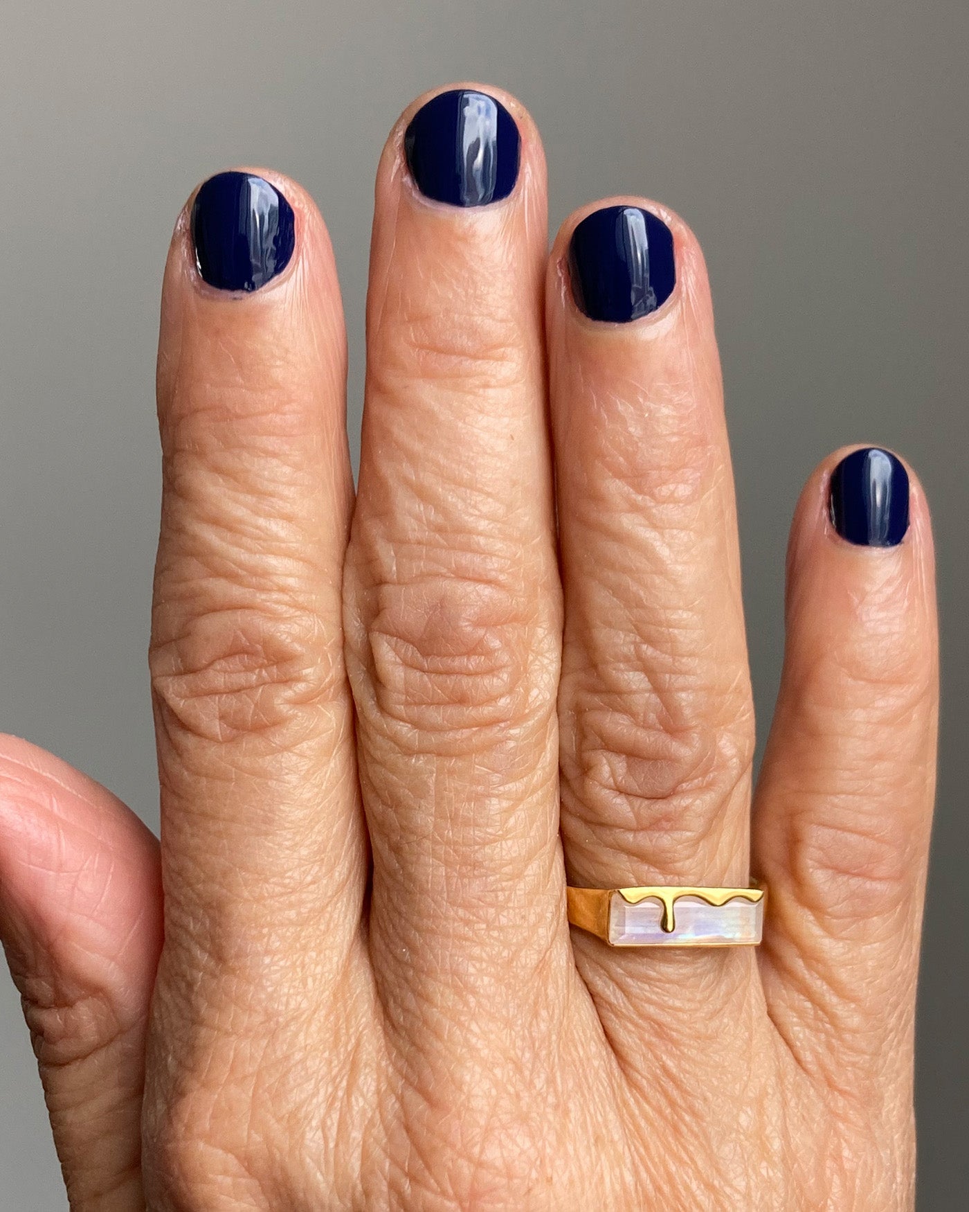 venture fearlessly into the unknown with a deep midnight creme lacquer filled with uncharted mystery.