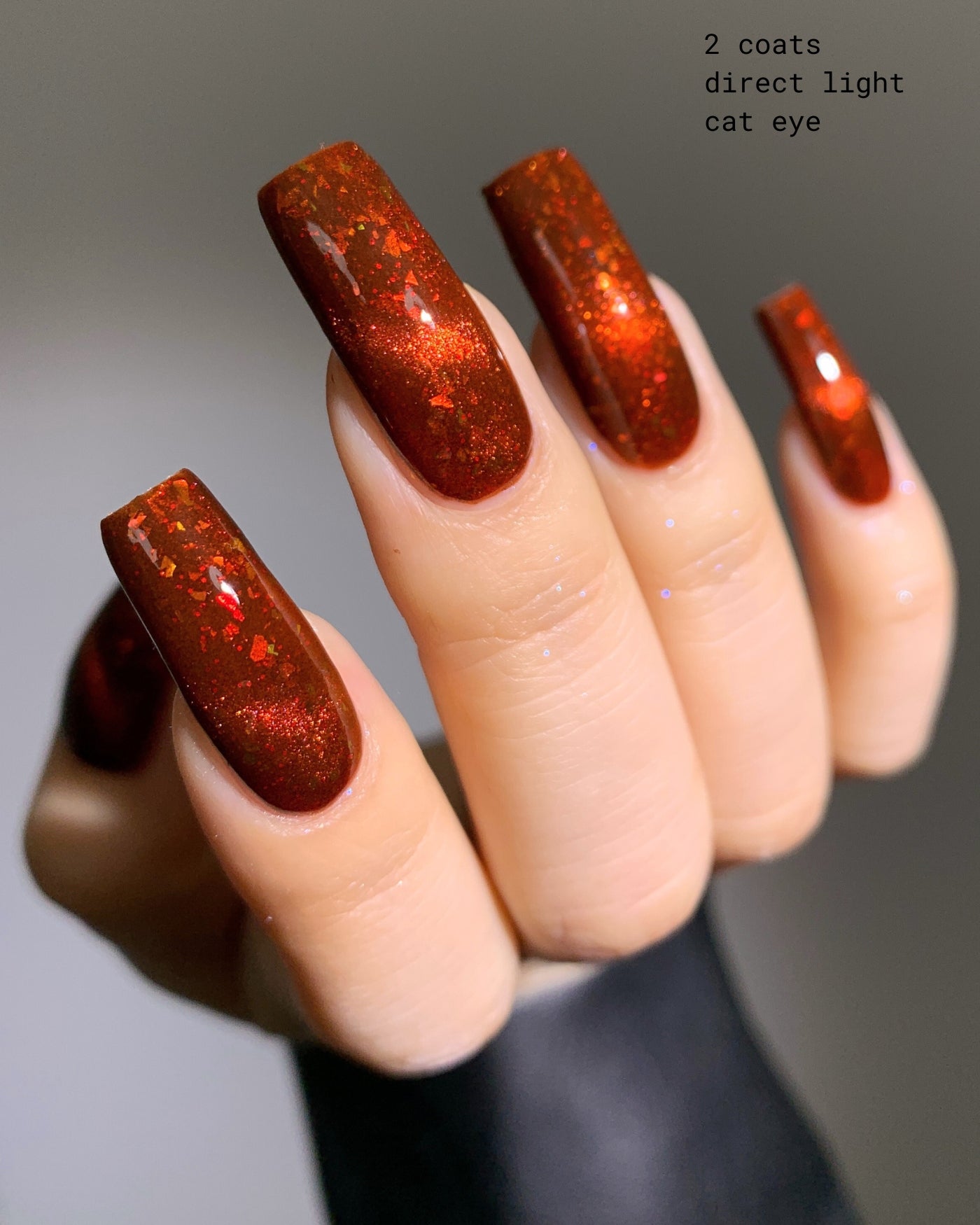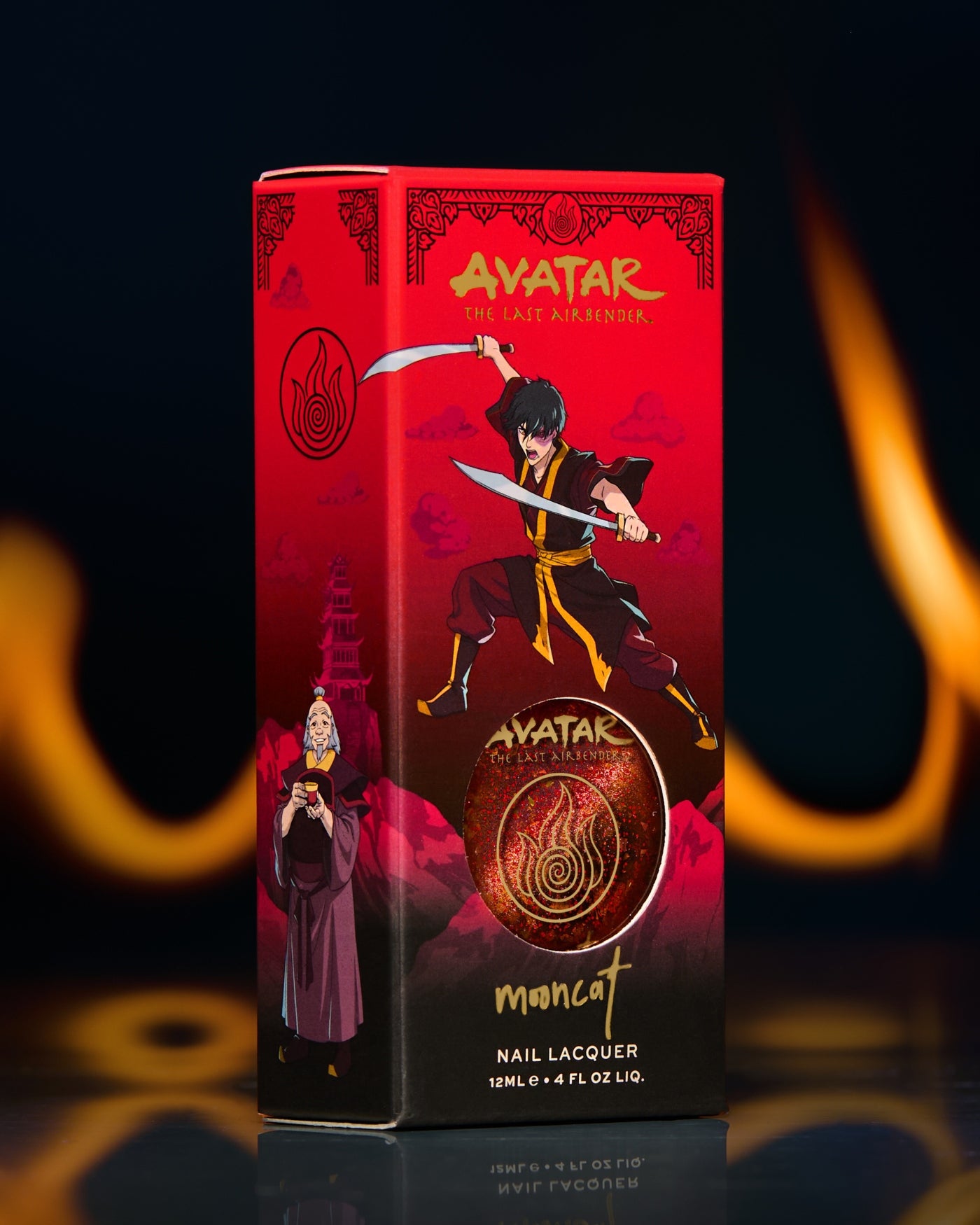 JASMINE DRAGON is a bright orange magnetic lacquer filled with color-shifting, iridescent yellow-to-orange-to-green flakies and red glitter, that reveals a burnt orange base when magnetized. from our AVATAR: THE LAST AIRBENDER collaboration collection - and only available for a limited time.