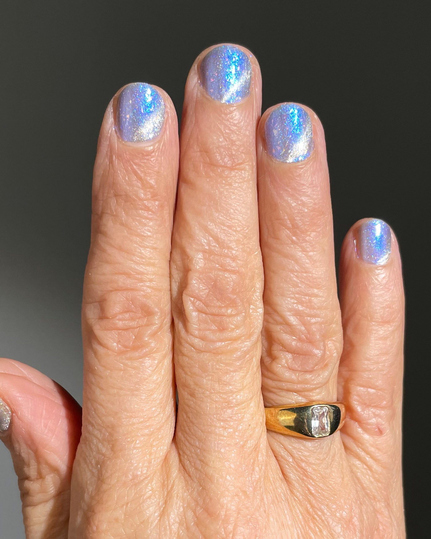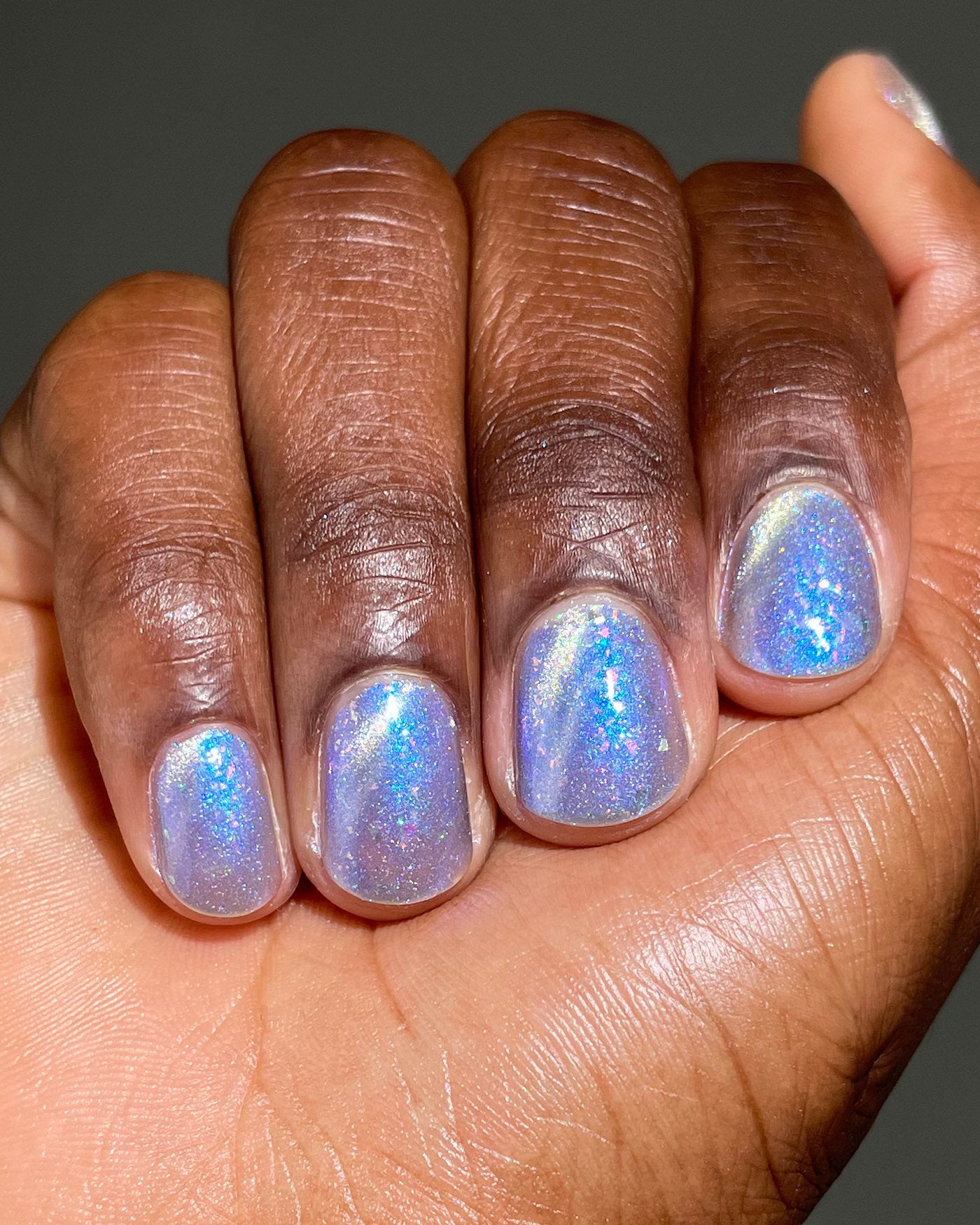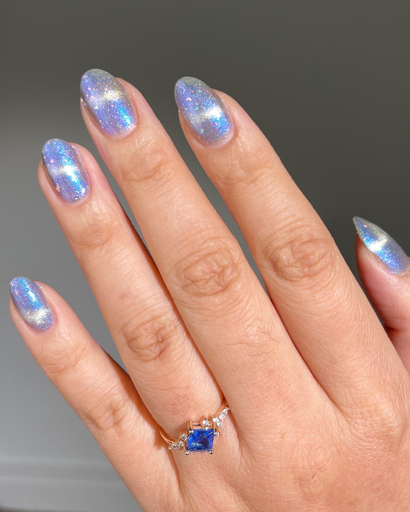 drawn together by an unshakable magnetism. a crescendoing climax of kaleidoscopic splendor, in stifled gasps of cold blue. flush with pink pangs of iridescence. fluttering with sudden rushes of color in gold, green, and blue. overcome with holographic shivers of shimmer. faint of heart. forever magnetized by the sparkling silver glimmer of an otherworldly pull. a taste of the immortal, already fleeting.