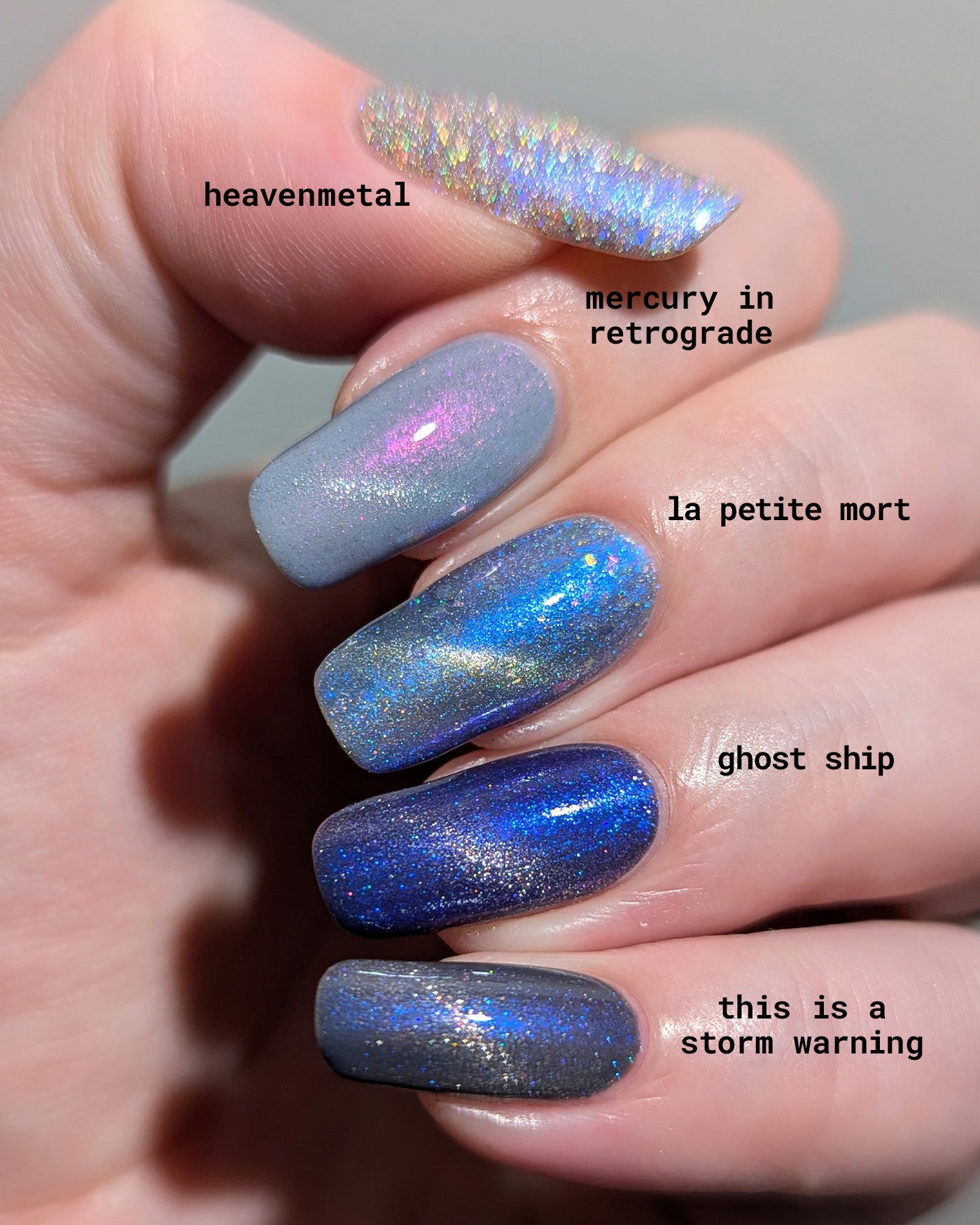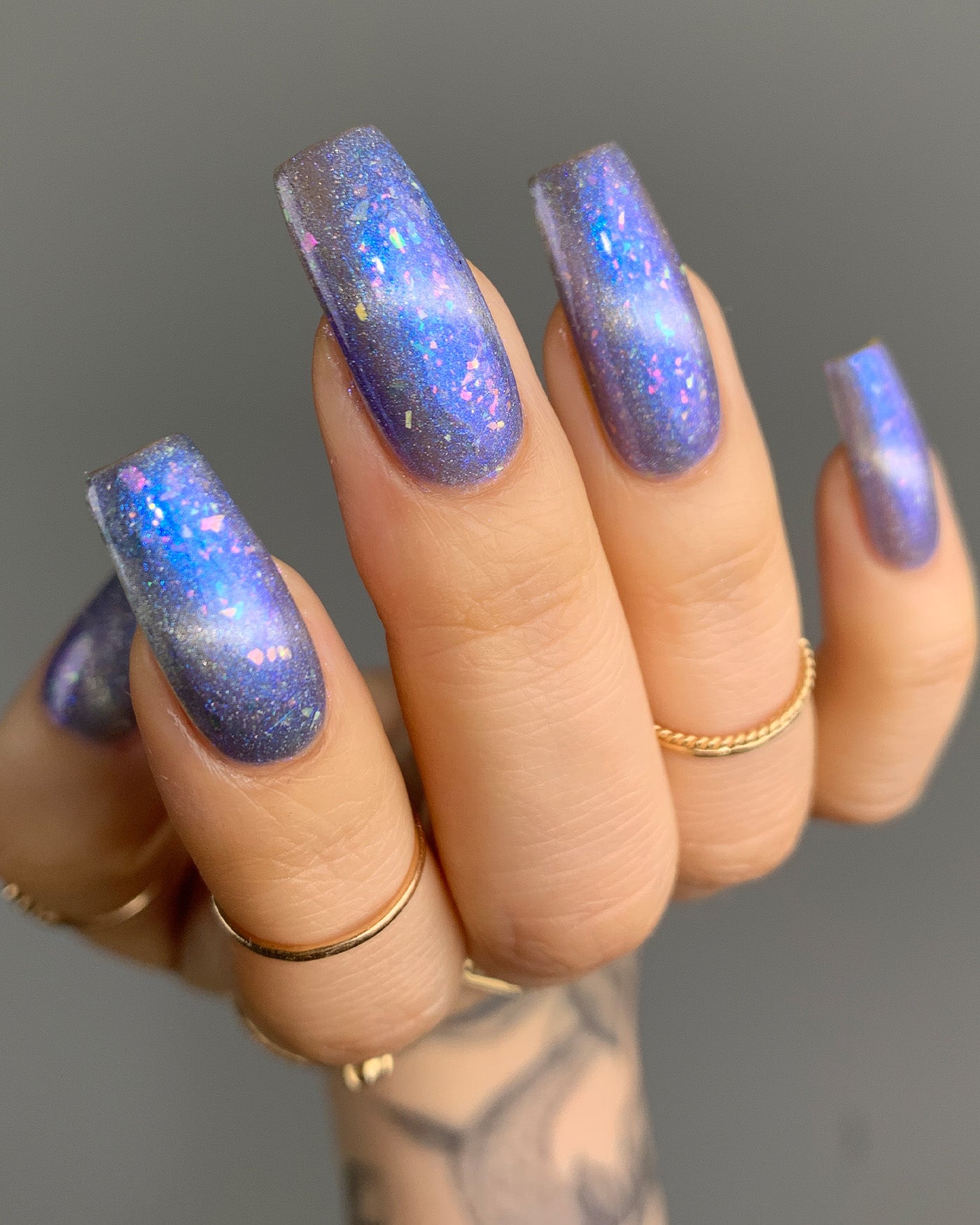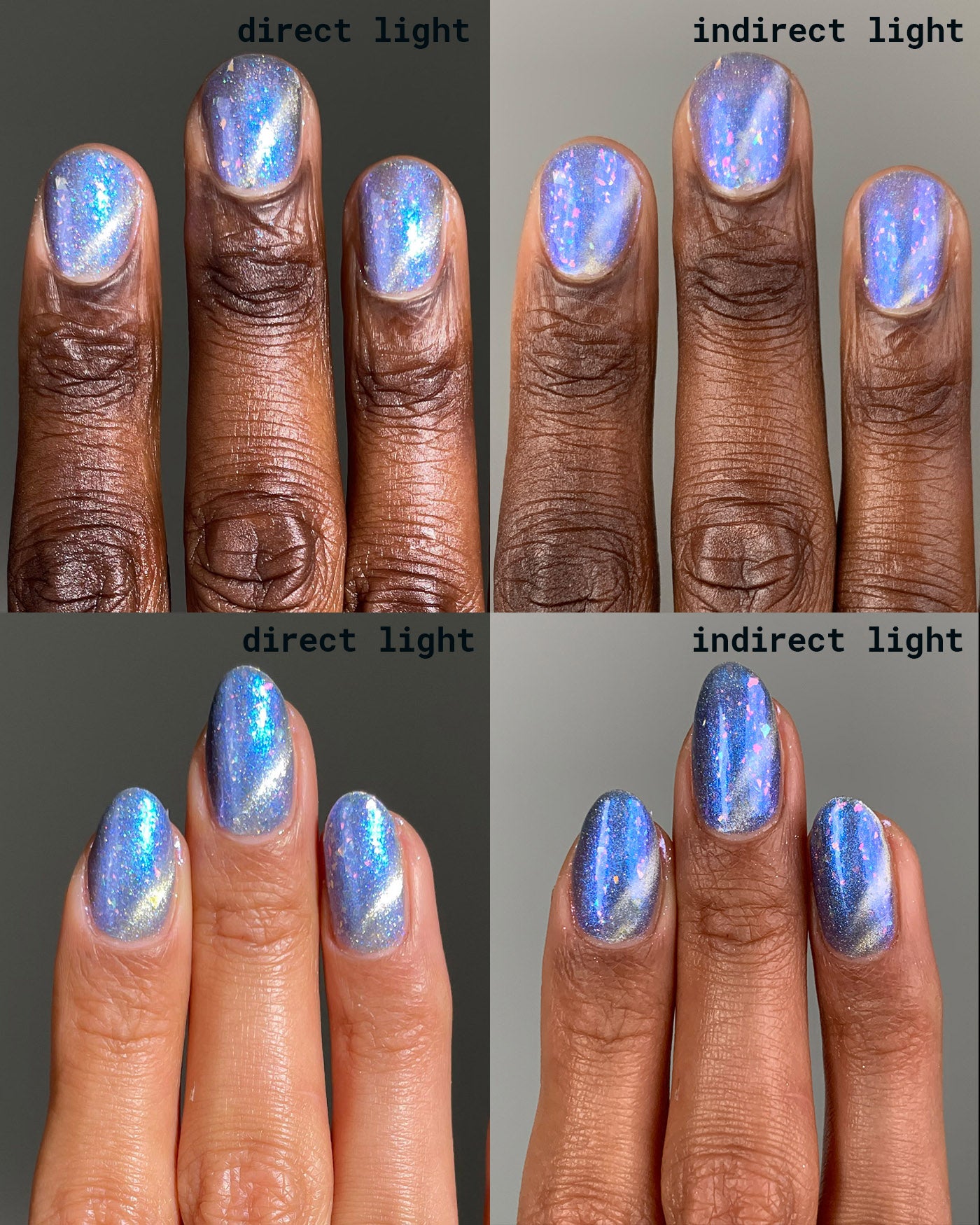 drawn together by an unshakable magnetism. a crescendoing climax of kaleidoscopic splendor, in stifled gasps of cold blue. flush with pink pangs of iridescence. fluttering with sudden rushes of color in gold, green, and blue. overcome with holographic shivers of shimmer. faint of heart. forever magnetized by the sparkling silver glimmer of an otherworldly pull. a taste of the immortal, already fleeting.