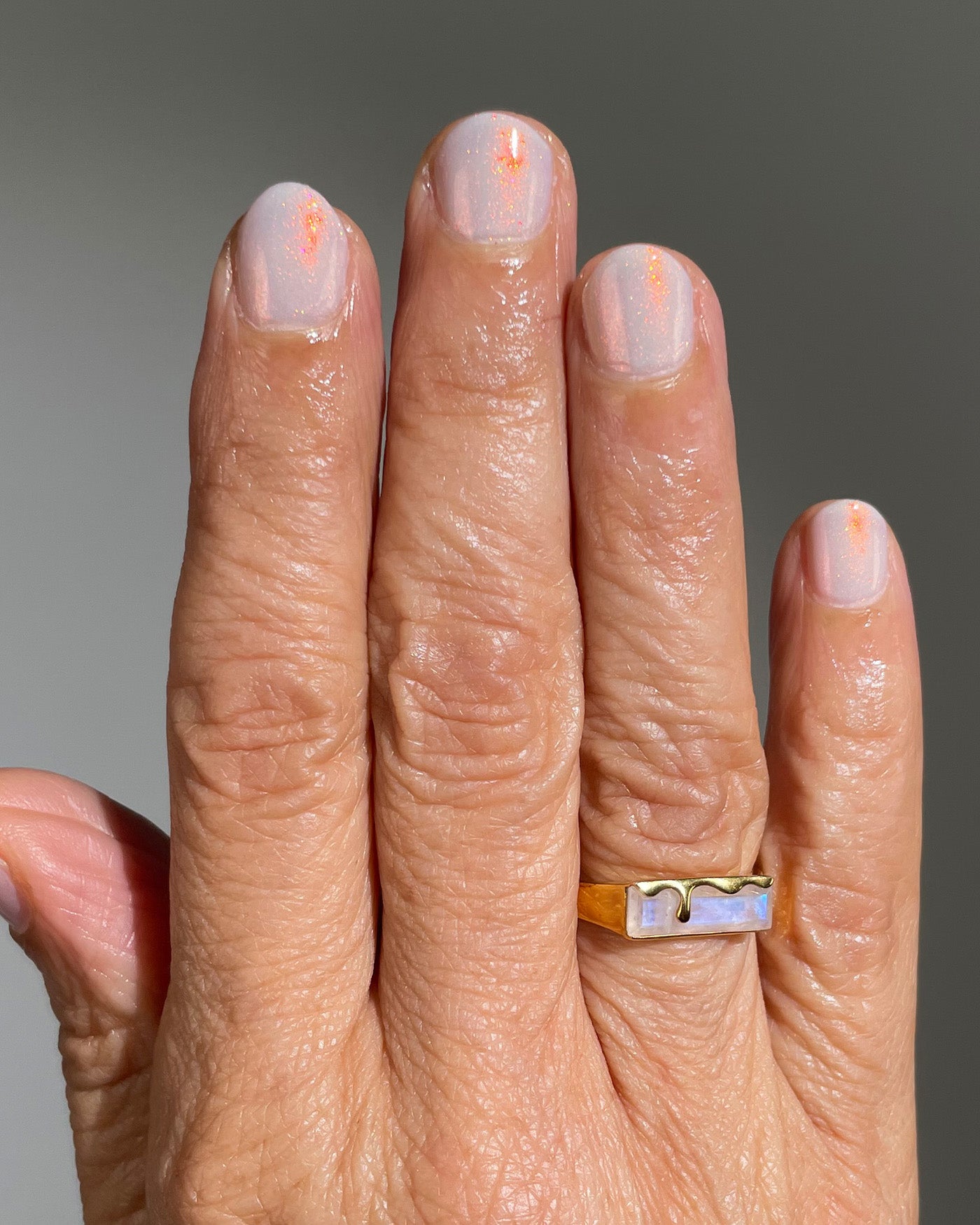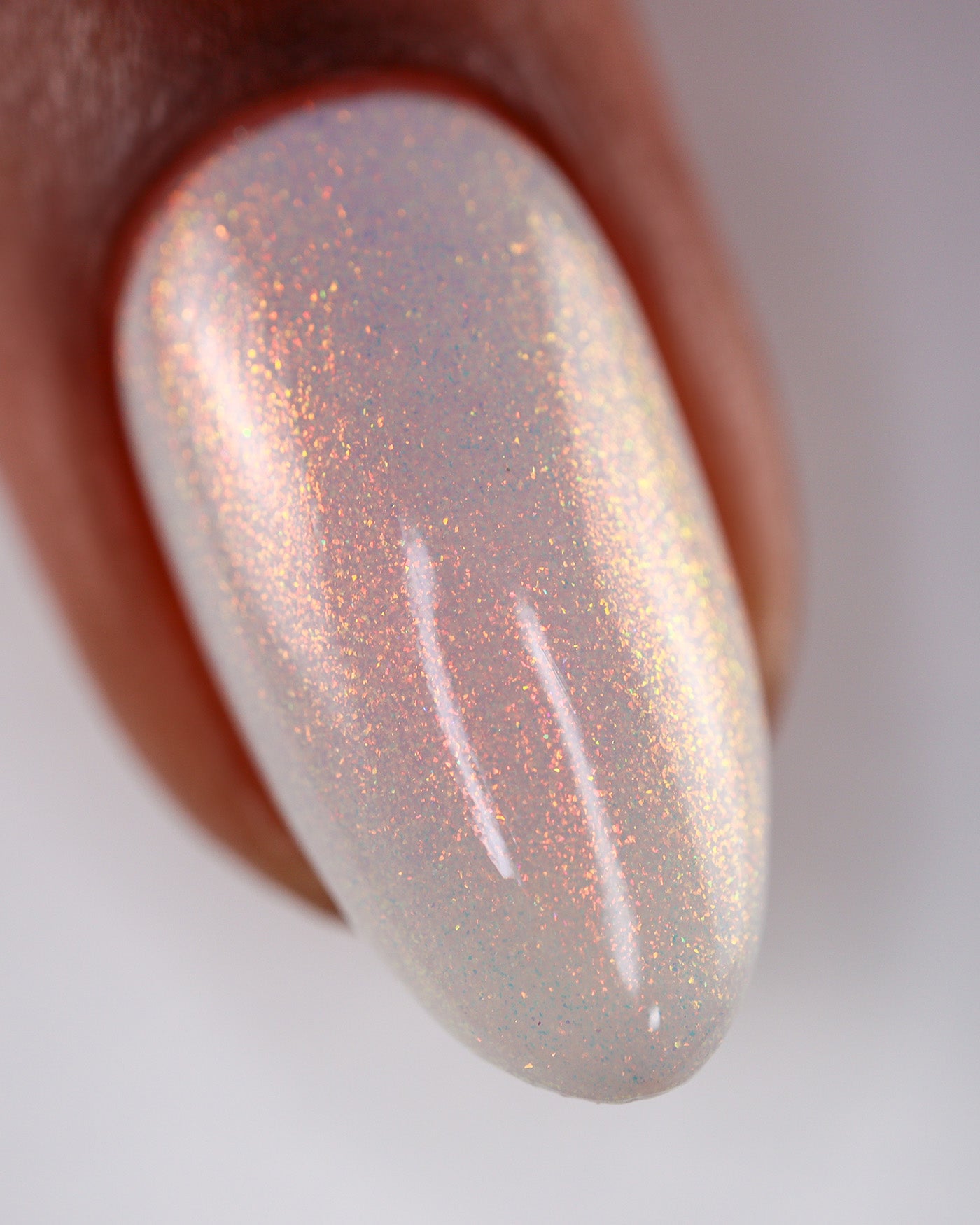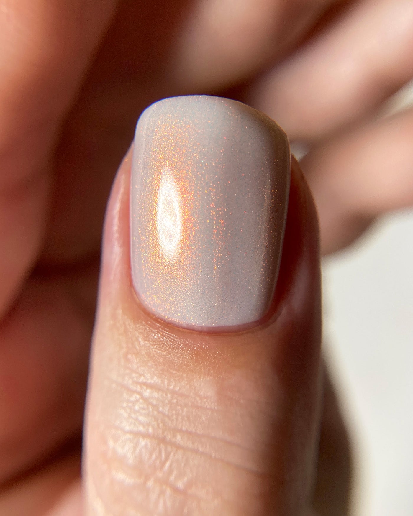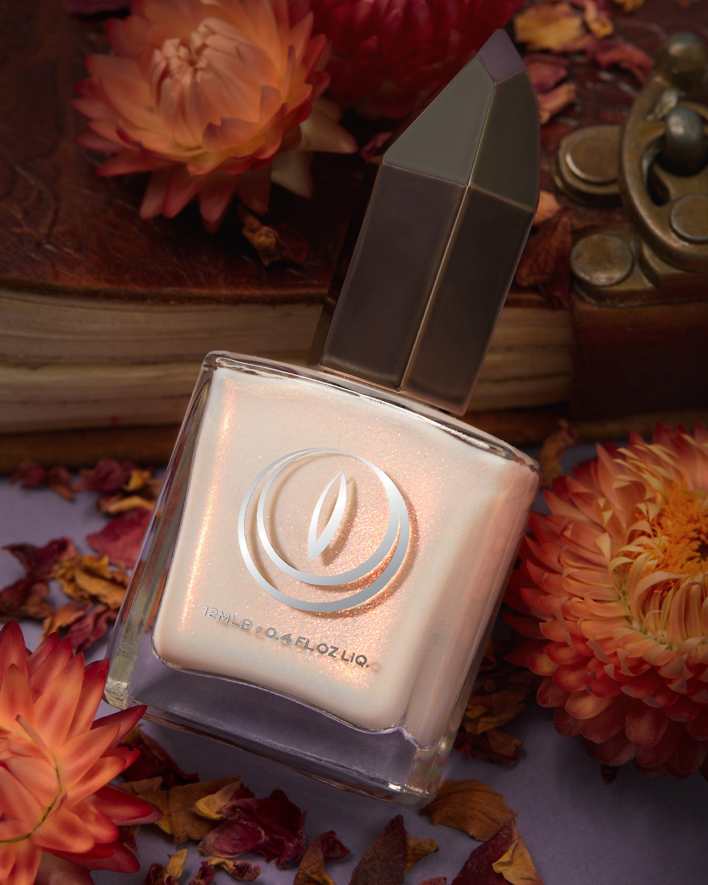 let this bone-ivory shade serve as a beautiful reminder to relish all that is finite. packed with an ever-glimmering burst of fiery orange shimmer, this seemingly demure shade will forever flicker, like a slow-melting candle or the crawl of sunset, reminding you, endlessly, to bask in the ever-fleeting present.