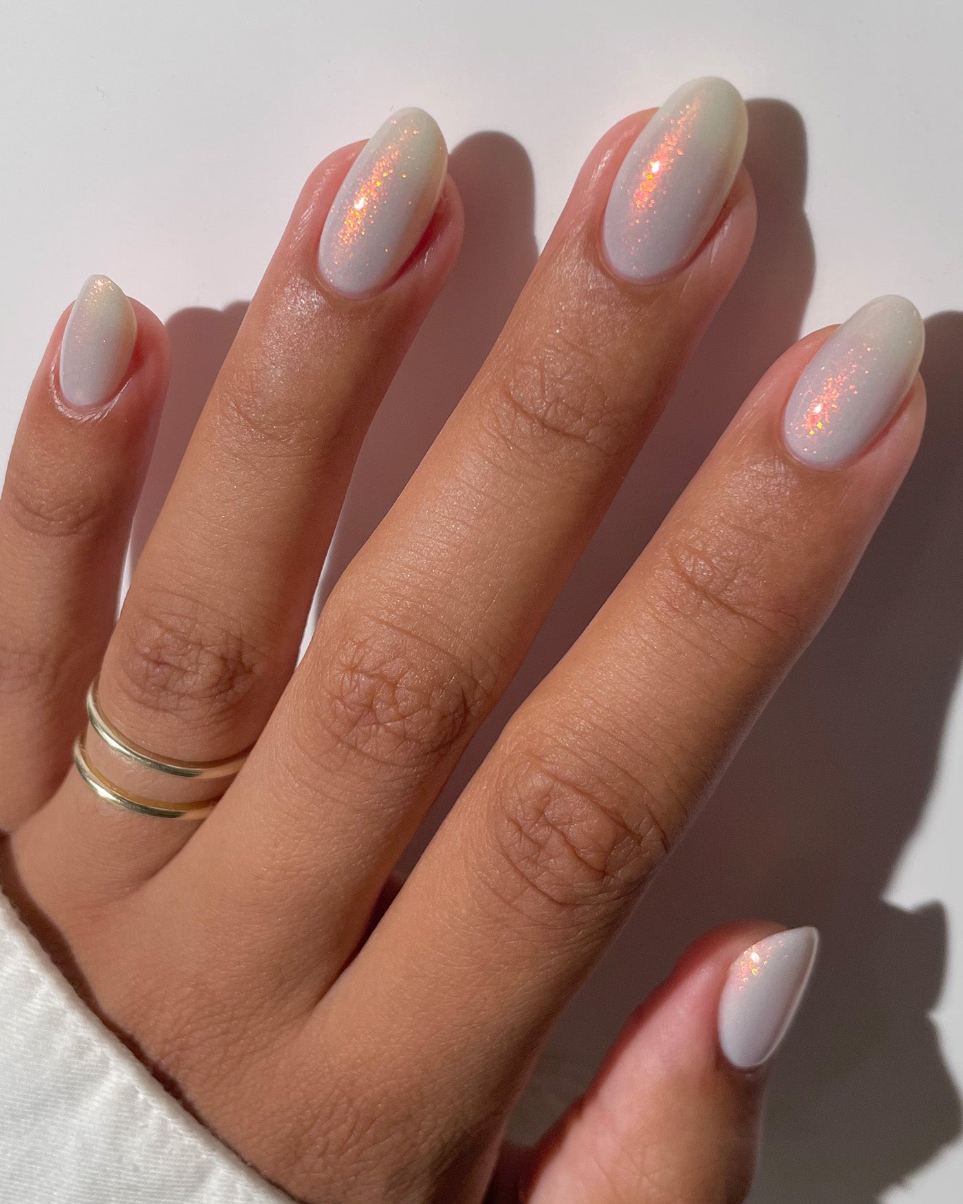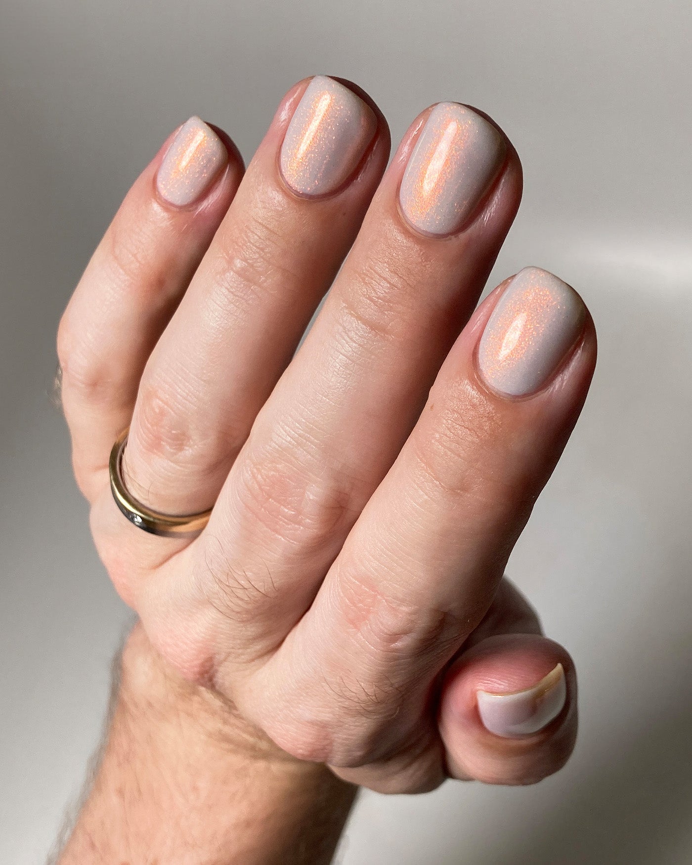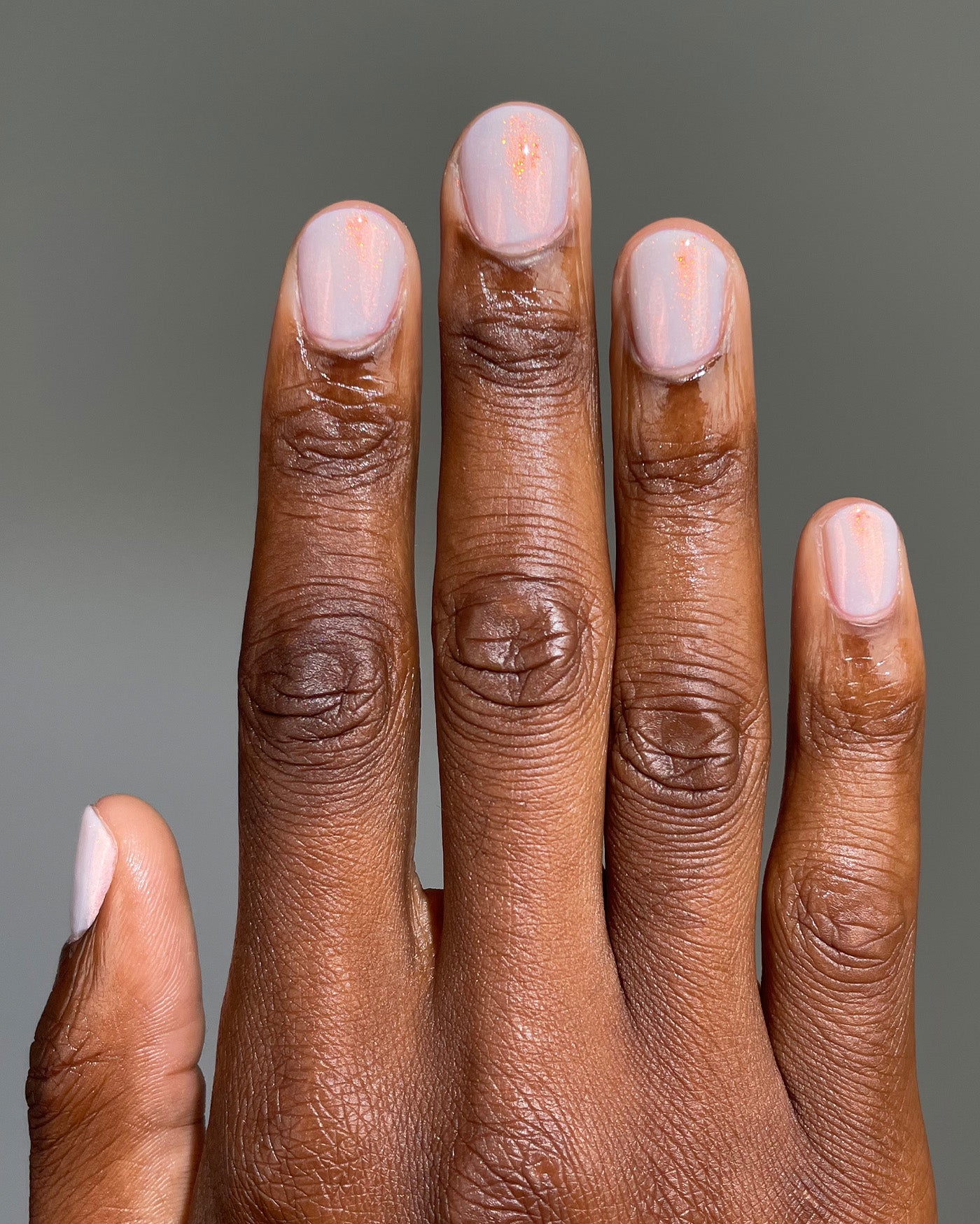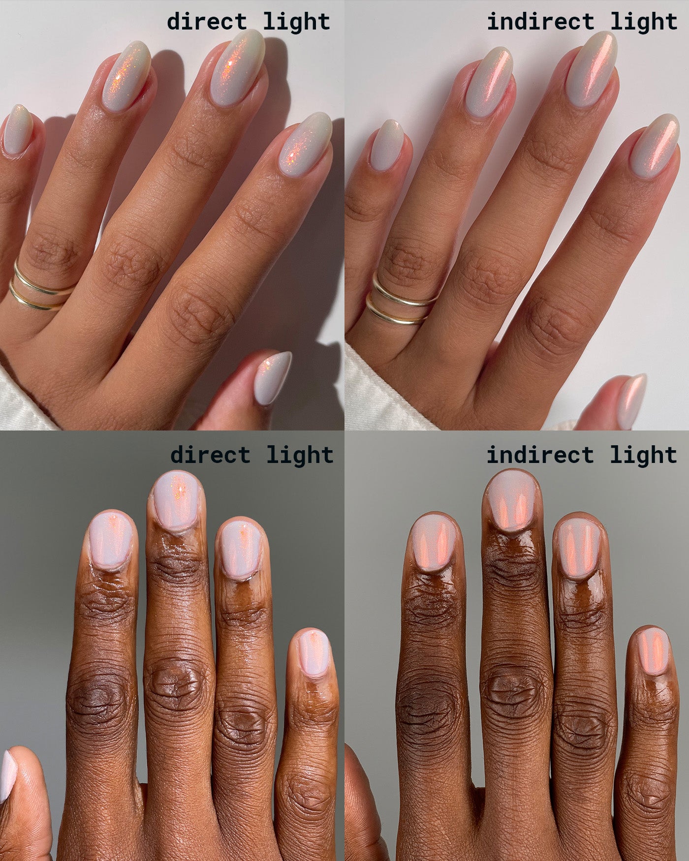let this bone-ivory shade serve as a beautiful reminder to relish all that is finite. packed with an ever-glimmering burst of fiery orange shimmer, this seemingly demure shade will forever flicker, like a slow-melting candle or the crawl of sunset, reminding you, endlessly, to bask in the ever-fleeting present.