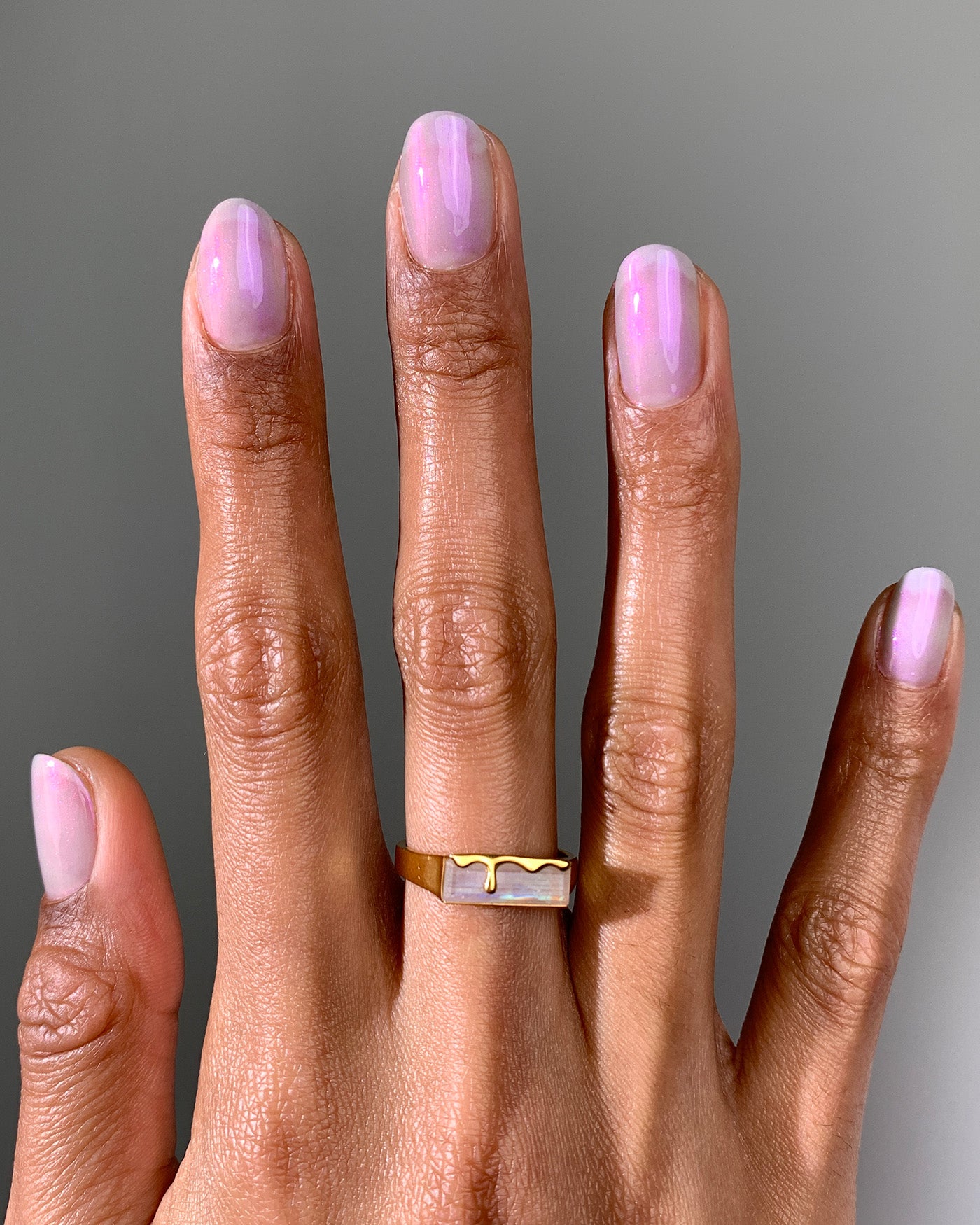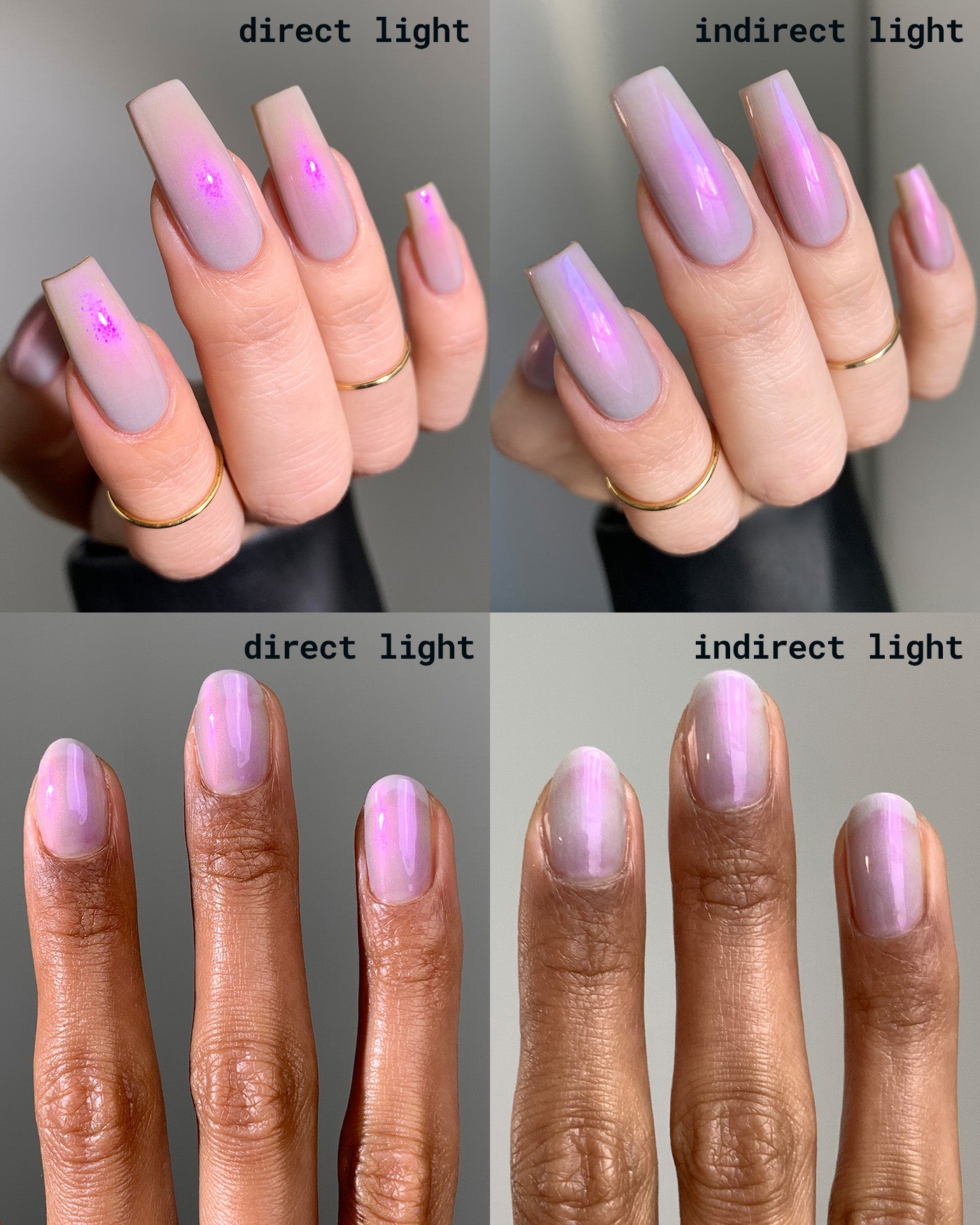 note: this shade has an intentionally ethereal sheerness, but can be layered to your liking over a coat of our GETTING EVEN NAIL PRIMER for a more opaque look.