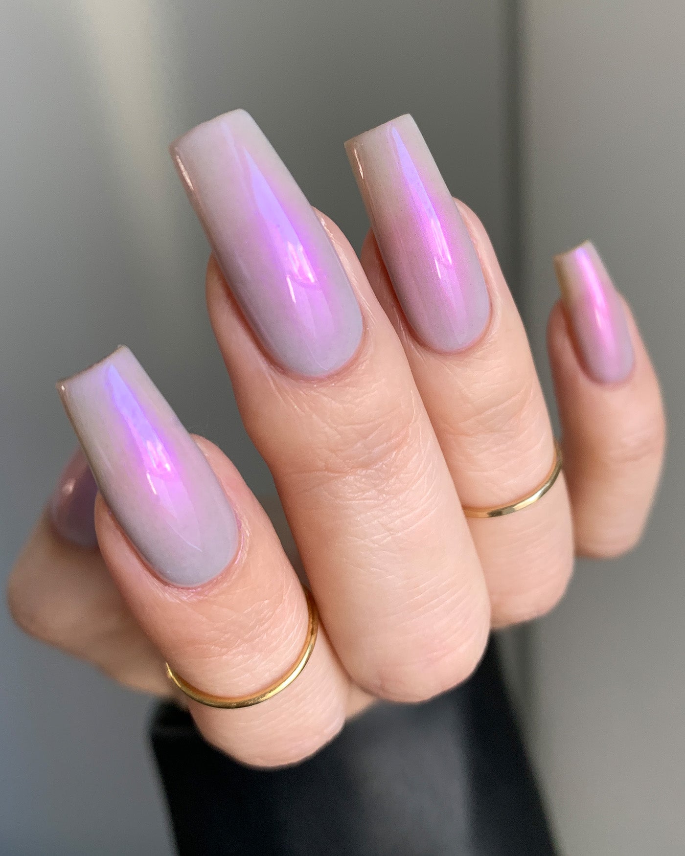 this lacquer loves looking at itself on your claws. and can you blame it? give it its flowers and bask in the perennial beauty of the romantic punch of violet that pulsates at the heart of this ethereally sheer white-gray bud. it’s so transfixing that it’s been known to distract wearers from any and all impending gloom. 10/10 spring and underworld goddesses alike would pick it.