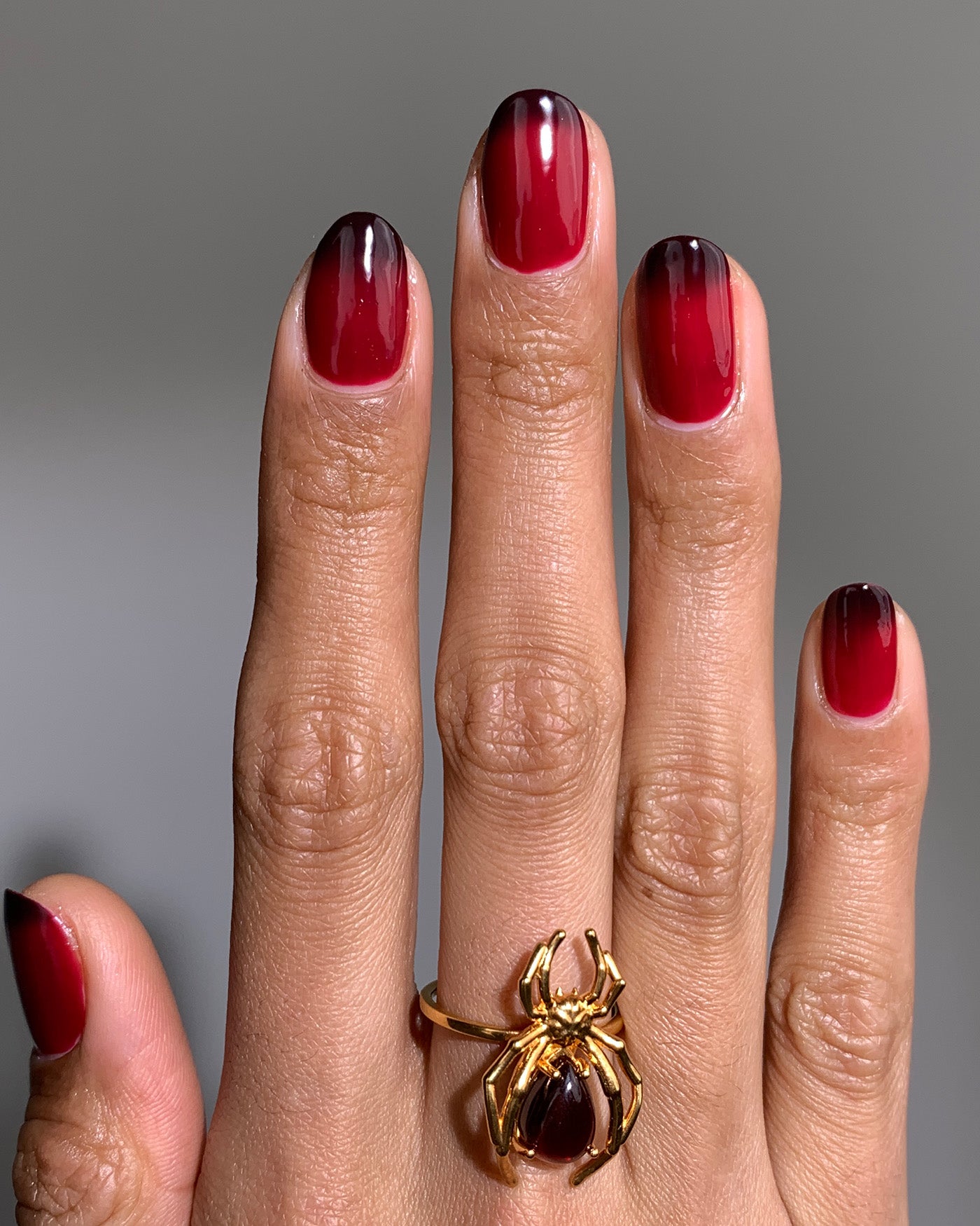 welcome to limbo. cycle through every shade of desire with a fiery thermal lacquer prone to shift with your every fluctuation in fahrenheit. as your temperature rises, and your claws thaw, you’ll see them transition from a deep shade of wine red to a shade of raspberry red. as your feelings chill, you’ll watch as they cycle right back to a deep wine red yet again. occupy the tricky inbetween? and your claws will meld into an ombre-like purgatory. it’s a true study of heat.