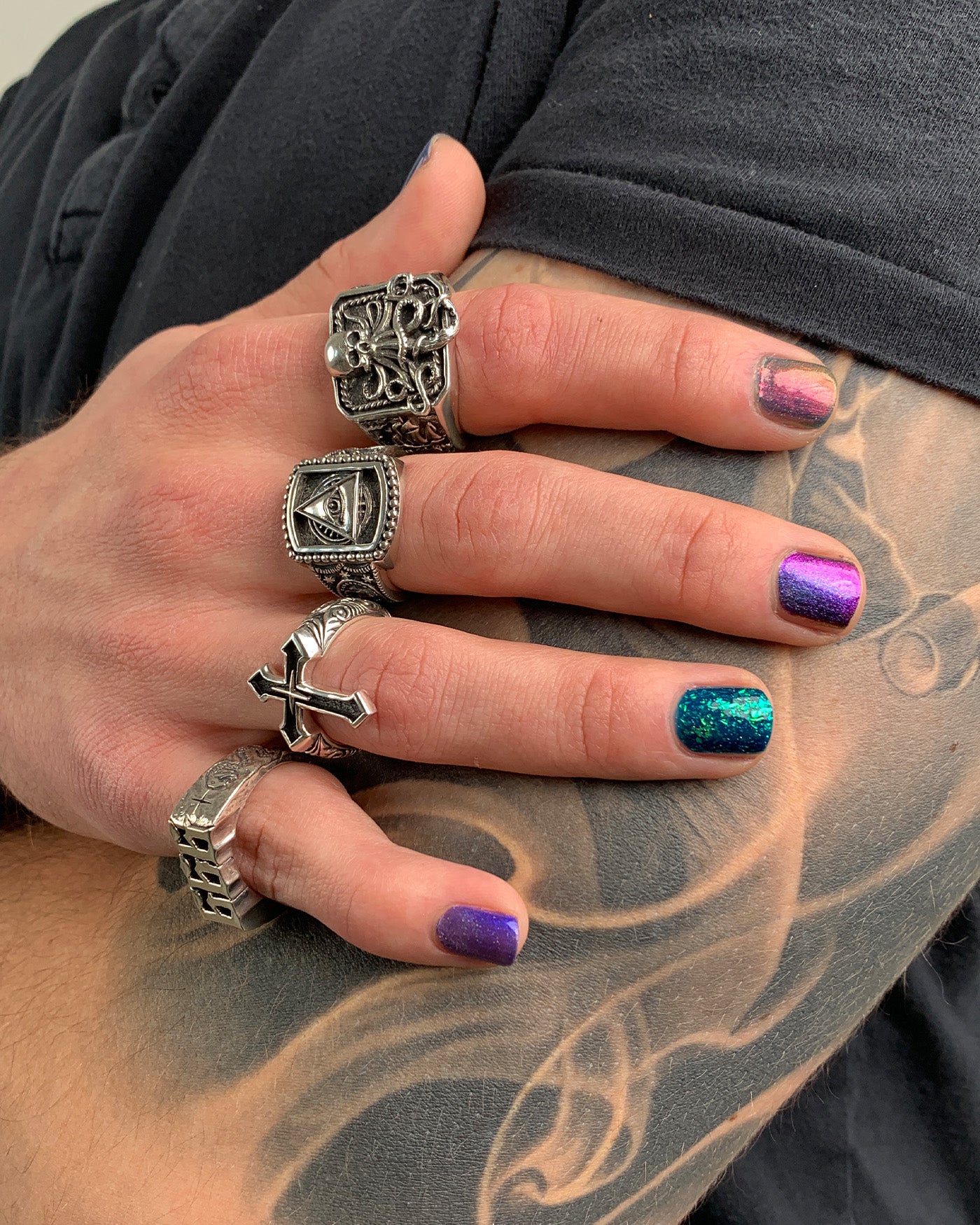 the SONGS OF SIRENS SET includes 9 special effect nail lacquers: TREACHERY IN THE BLUE, DARK OMENS, QUICKSAND’S EMBRACE, AM I EVERYTHING YOU FEAR?, MAELSTROM, THE SIRENS’ REVENGE, THE SEA BETWEEN US, GHOST SHIP, and A MOST DESTRUCTIVE MELODY.