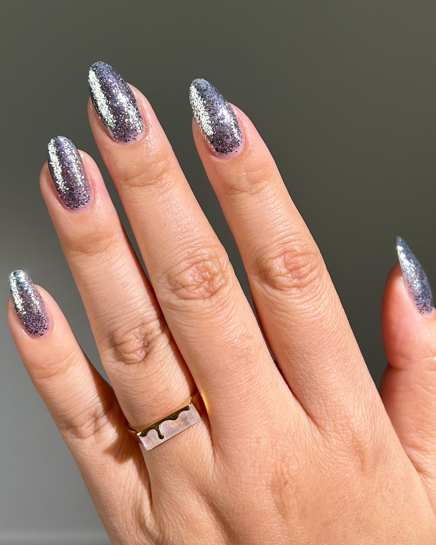 STAR DESTROYER is an icy blue-silver metallic flakie lacquer jam-packed with silver metallic flakies and micro holographic glitter. from the JOIN THE DARK SIDE SET, conjured in collaboration with STAR WARS™ - and only available for a limited time.