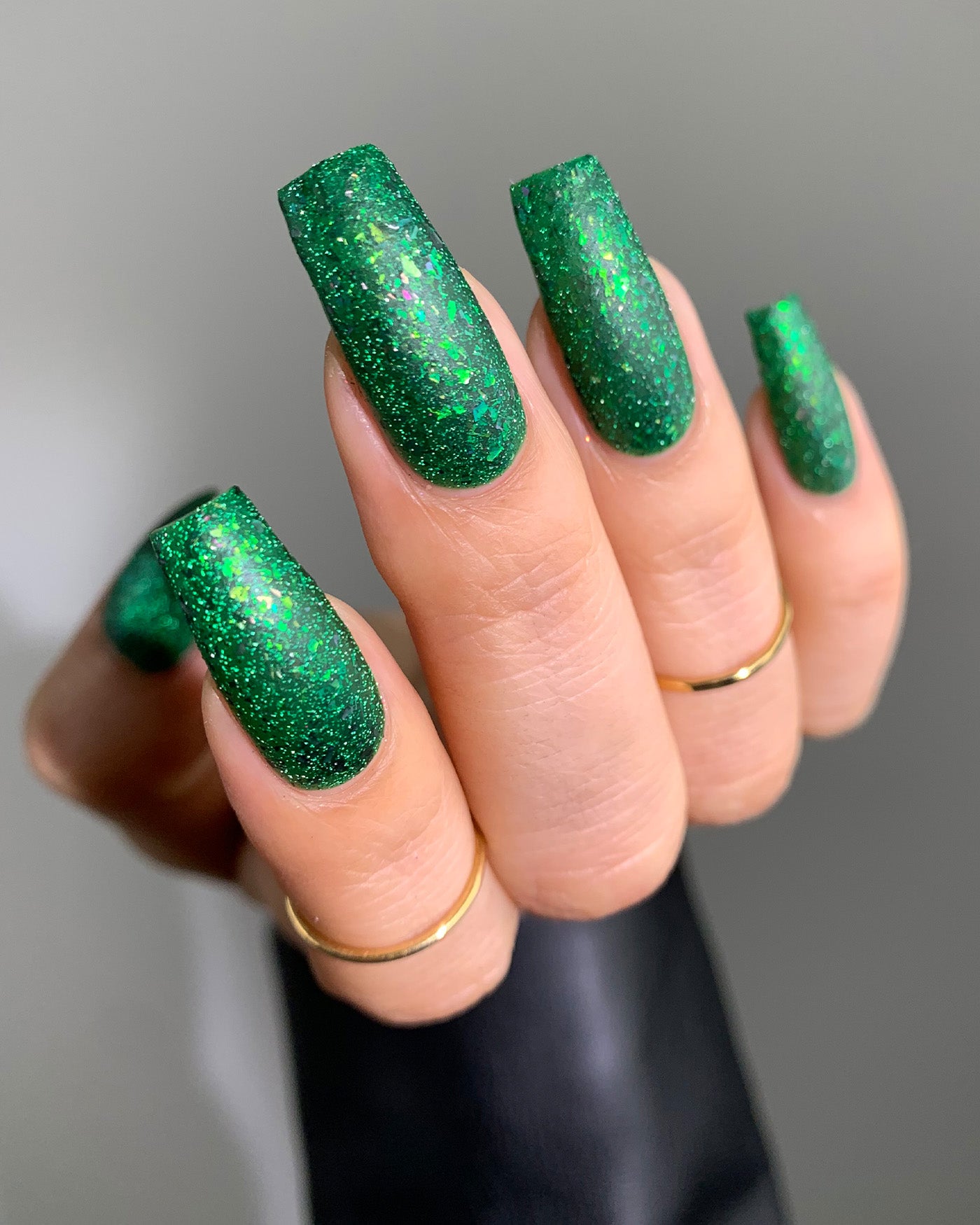 I might be a little obsessed with this one. The green just pops and the flakes just give it this incredible sparkle. I honestly can't stop looking at my nails with this shade on it.